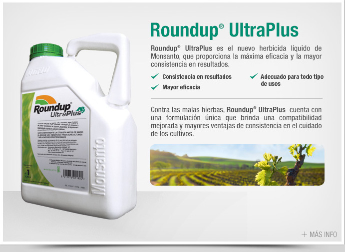 Roundup UltraPlus herbicida líquido que proporciona la máxima eficacia y la mayor consistencia en resultados. Contra las malas hierbas, Roundup UltraPlus cuenta con una formulación única que brinda una compatibilidad mejorada y mayores ventajas de consistencia en el cuidado de los cultivos.